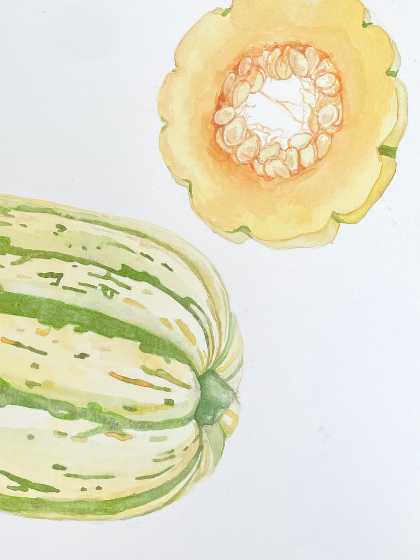 Our unifying subject will be seasonal produce - fruits, veggies and herbs, that we will render from life. These subjects are great for beginners and experienced watercolor painters alike; their organic shapes make them forgiving drawing subjects, but their beauty can be a muse for life.